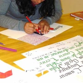 La calligraphie est un merveilleux moyen de mettre en place une technique purement créative. Au-delà de sa beauté, la pratique de la calligraphie contribue à notre santé mentale et à la mobilisation de notre attention. Elle peut aussi se marier avec d’autres formes d’art (poésie, dessin, peinture, etc.)